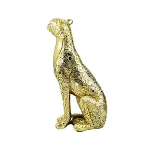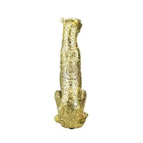 Aprecie a beleza e elegância desta escultura de leopardo dourado em poliresina.