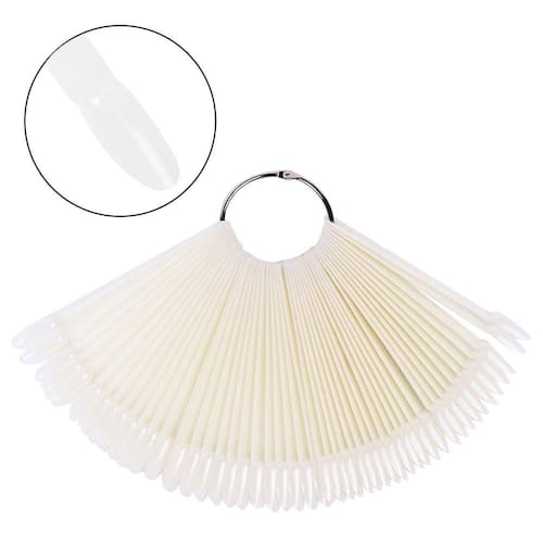 Especificação: Dimensões: 12 cm x 1 cm (A x L) Material: Acrílico Modelo: Natural Leitosa Contém: 50 unhas e 1 argola