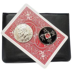 Este é uma excelente mágica que lhe dará reações muito boas. Mostre um envelope de PVC com duas moedas e uma carta. Coloque uma das moedas sobre a mesa, ou mesmo a mão de um espectador, e simplesmente toque nela com a carta e a moeda muda instantaneamente. Abra a carteira e a moeda que estava na mão mostra agora se encontra na carteira.