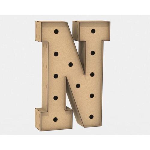 Letra Caixa Grande N MDF 80cm Altura Furo Lâmpada Iluminação. A Letra Caixa Grande N em MDF é perfeita para decoração de ambientes. Com 80cm de altura e furo para encaixe de lâmpada tipo camarim, ela proporciona um efeito tridimensional e destaque na decoração. Produzida em MDF cru de 3mm de espessura, é resistente e durável. A montagem é simples e pode ser feita com diferentes tipos de cola. A letra segue desmontada para facilitar o transporte. Transforme a decoração dos seus eventos e espaços com a Letra Caixa Grande N em MDF. Compre agora mesmo e dê um toque especial ao ambiente! Marca: Doce Arte Em Madeira Ean: 7807720725717