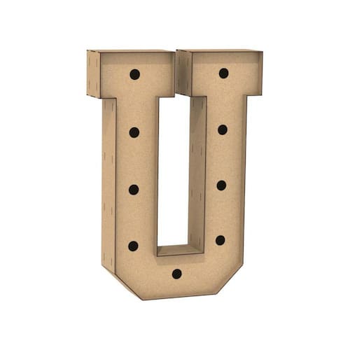 Letra Caixa Grande U Mdf 100Cm Altura Furo Lampad Iluminação