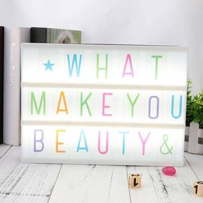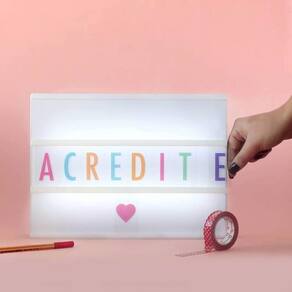 Letreiro Quadro Led Light Box Cinema com 96 Letras ColoridasColoque suas mensagens pessoais no centro das atenções com esta caixa de luz. São três painéis para inserir letras, ícones ou símbolos, permitindo que você coloque a frase que você quiser ou exiba seus ícones favoritos.Características:- Tamanho: 30cm x 22cm x 4cm- Energia: Cabo Usb Incluso ou Pilha AA Não inclusa Itens inclusos:- Luminária Light Box;- 1 kit contendo 96 caracteres coloridos Marca: Wtx Imports