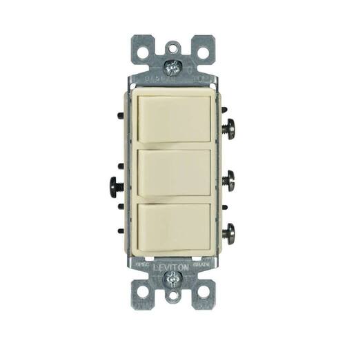Leviton Decora interruptor triple combinación de palanca unipolar de 15 amperios color marfil, paquete de 1 - Grado comercial - Interruptor de combinación de corriente alterna - Estilo Decora unipolar