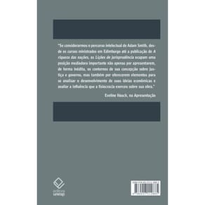 “Se considerarmos o percurso intelectual de Adam Smith, desde os cursos ministrados em Edimburgo até a publicação de A riqueza das nações, as Lições de jurisprudência ocupam uma posição mediadora importante não apenas por apresentarem, de forma inédita, os contornos de sua concepção sobre justiça e governo, mas também por oferecerem elementos para se analisar o desenvolvimento de suas ideias econômicas e avaliar a influência que a Fisiocracia exerceu sobre sua obra.”
