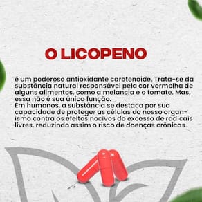 Licopeno 8mg + selênio 90 cápsulas - nutrione O licopeno é um componente natural encontrado principalmente no tomate e possui propriedades associadas a benefícios à saúde. Sua principal ação é atuar como antioxidante, contribuindo para a proteção contra danos celulares causados por radicais livres, o que pode estar relacionado a processos de envelhecimento.