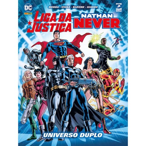 O Universo DC encontra novamente a Sergio Bonelli Editore em mais uma parceria histórica! Desta vez, a Liga da Justiça se unirá a Nathan Never numa aventura ambientada em duas Terras que se passa em diversos momentos temporais. O contexto futurístico recheado de elementos da ficção científica em que o agente especial Nathan Never vive combina perfeitamente com o da maior equipe da Editora das Lendas, que frequentemente enfrenta ameaças multiversais e é obrigada a navegar pelo tempo e espaço para garantir a paz.