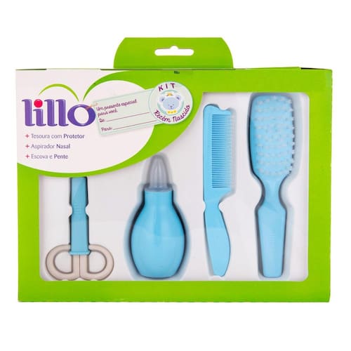 Kit higiene pente e escova com cerdas ultramacias, pontas arredondadas. A tesoura possui extremidades redondas e o protetor permite higienização. O aspirador com bico anatõmico ponta macia, permite aspiração eficaz. Contém: 1 aspirador nasal, 1 tesoura com protetor, 1 escova e 1 pente. Ean: 7896033231497