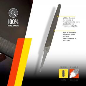 Para Desbastes ou remoção rápida De Metais. Pode ser usada em superfícies chatas ou curvas. Possui corte duplo nas duas faces e corte simples nas duas bordas, que facilita o desbaste rápido. A lima chata murça K-&-F é utilizada por profissionais e nas indústrias para trabalhos gerais em aço, ferro fundido,metais, etc. Bastante utilizada em superfícies chatas e curvas. Levemente afilada na largura, têm corte duplo em ambas as faces e corte simples em ambas as bordas. É especialmente indicada para ser utilizada em mecânica e ferramentaria para desbaste ou remoção rápida de metais.