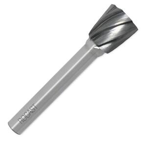A Lima Rotativa Cônica Invertida Para Alumínio 12mm 45,0117 - Rocast, é indicada para o desbaste e acabamentos em alumínio. Fabricada em Metal Duro MD para Garantir maior resistência e menor desgaste nas aplicações. Ideal para trabalhos de usinagem, funilaria , decoração e entre outros; proporcionando um acabamento uniforme e de qualidade.