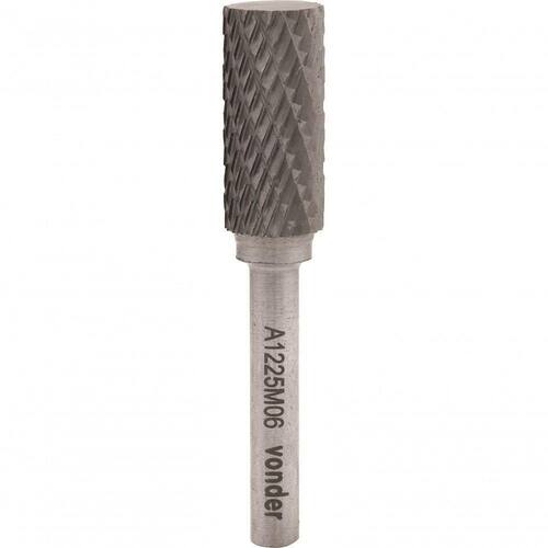 Lima Rotativa Vídea Cilíndrica 6x16mm Haste 6mm La006 Vonder Conteúdo da embalagem 1 Lima rotativa Aplicações e dicas de uso Utilizada em retificadeira para desbaste e acabamento em metais, como: cordão de solda, rebarbações em geral e demais operações que necessitam a remoção de material Destaques e diferenciais Oferece conforto e maior segurança, reduz o esforço sobre o equipamento e possui alta produtividade. Conta com ponta de vídea/metal duro que proporciona maior vida útil. DETALHES TÉCNICOS