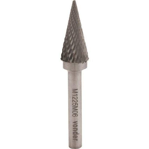 Lima Rotativa Vídea Cônica 10x20mm Haste 6mm Lm010 Vonder Conteúdo da embalagem 1 Lima rotativa Aplicações e dicas de uso Utilizada em retificadeira para desbaste e acabamento em metais como: cordão de solda, rebarbação em geral e demais operações que necessitam a remoção de material Destaques e diferenciais Oferece conforto e maior segurança ao operador, reduz o esforço sobre o equipamento, alta produtividade. Ponta de vídea/metal duro proporciona maior vida útil. DETALHES TÉCNICOS