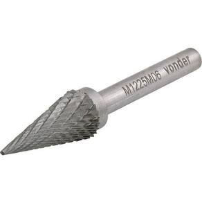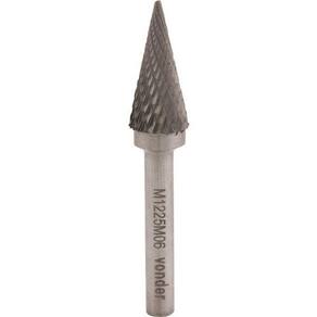 Lima Rotativa Vídea Cônica 12x25mm Haste 6mm Lm012 Vonder Conteúdo da embalagem 1 Lima rotativa Aplicações e dicas de uso Utilizada em retificadeira para desbaste e acabamento em metais como: cordão de solda, rebarbação em geral e demais operações que necessitam a remoção de material Destaques e diferenciais Oferece conforto e maior segurança ao operador, reduz o esforço sobre o equipamento, alta produtividade. Ponta de vídea/metal duro proporciona maior vida útil. DETALHES TÉCNICOS