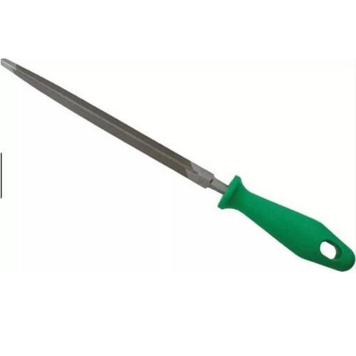Lima triangular delgada com cabo Usadas para afiar todos os tipos de serrotes com dentes em ângulo de 60. Estas limas de corte simples possuem o picado das bordas dimensionado para afiar os vãos entre os dentes do serrote. Medida: 6 Ref.: 14224BC Marca: Não Informado