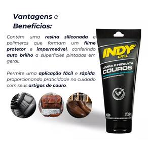 Seu carro merece o melhor! O Indy Limpa e Hidrata Couros foi desenvolvido especialmente para proporcionar um cuidado completo e profissional para os bancos e painéis de couro do seu veículo. Com nossa fórmula exclusiva, você restaura a beleza natural do couro, protegendo-o contra raios UV, ressecamento e rachaduras.