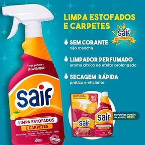O Limpa Estofados Saif é a solução definitiva para manter seus estofados com aparência de novos e livres de sujeira. Sua fórmula de alta tecnologia foi desenvolvida para agir profundamente nas fibras de tecidos, removendo manchas, poeira e sujeiras acumuladas pelo uso diário. Com um prático aplicador em spray, ele facilita a limpeza de sofás, poltronas, cadeiras estofadas, carpetes e até o interior do seu veículo, devolvendo a vivacidade das cores sem danificar a textura do material.