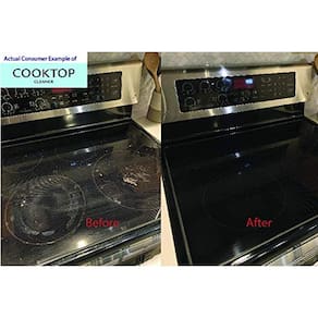 - Este limpador de cooktop resistente, não abrasivo remove gordura, sujeira e manchas em todas as gamas lisas de cooktop/fogão, incluindo vidro, cerâmica, indução, radiante, convecção e halogênio sem arranhar e mantém o brilho