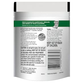 - O limpador de lava-louças Cascade ajuda a eliminar odores e remover o acúmulo de calcário e a gordura para revelar uma máquina mais fresca e limpa