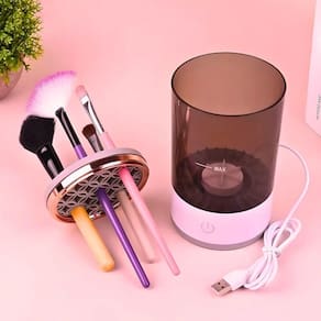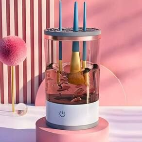 Seu funcionamento é simples: basta adicionar água com sabão neutro no recipiente, inserir os pincéis nos encaixes da tampa e ativar o aparelho. Em poucos segundos, os resíduos de maquiagem, oleosidade e sujeira são completamente removidos, deixando os pincéis limpos e prontos para reutilização.