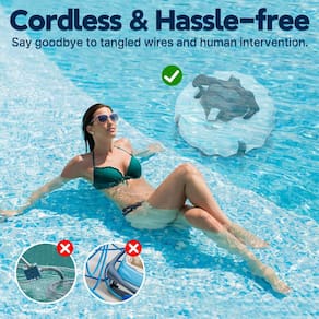 Como alguém que teme a tarefa de limpar manualmente minha piscina, este limpador robótico sem fio tem sido muito bom! Características e benefícios: * Sem fio e conveniente: o design sem fio elimina o incômodo de eu ter que lidar com cabos emaranhados, facilitando a limpeza da piscina * Limpeza potente: afirma ter motores potentes e acredito nisso porque coleta sujeira, detritos e folhas da minha piscina sem esforço * Navegação inteligente: a tecnologia de estacionamento automático garante que o robô não fique preso ou danifique minha piscina e funcione bem * Longo tempo de funcionamento: com 130 minutos de tempo de limpeza por carga, Posso confiar nele para manter minha pequena piscina limpa * Fácil de usar: a função de início com um toque e o design leve facilitam o uso e a recuperação. Recomendo este aspirador robótico sem fio para qualquer pessoa que queira simplificar sua rotina de manutenção da piscina. É eficiente, confiável e um ótimo investimento para quem valoriza seu tempo.