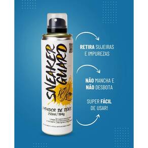 Descrição Sneaker Guard Limpador de Tênis é um limpador de sujeiras e impurezas sem solventes derivados de petróleo. Não mancha, não desbota, não ataca os materiais onde é aplicado, removendo com eficiência a sujeira acumulada nos calçados deixando um odor agradável. Modo de uso: Aplique um jato de espuma sobre a área a ser limpa e aguarde 30 segundos para agir Utilize uma escova e, em seguida, finalize a limpeza com um tecido, removendo o excesso sempre em movimentos circulares. Pode ser para limpar e hidratar couro, borrachas, tecidos, nylon etc. Importante: Conservar a embalagem em local arejado e protegido do sol.