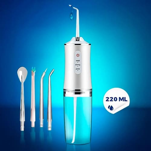 Realiza limpeza profunda limpeza profunda e sem dor entre os dentes e abaixo da linha da gengiva por meio de jatos contínuos ou pulsativos de água, removendo resíduos de alimentos e bactérias de áreas em que a escovação e o fio dental tradicional não alcançam.