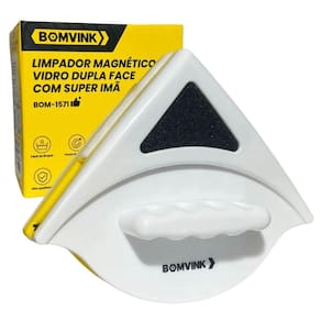 Limpador Magnético de Vidro Dupla Face com Super Ímã BOM-1571 - Bomvink O limpador magnético de vidro dupla face BOM-1571 da Bomvink foi desenvolvido para facilitar a limpeza de janelas de vidro com segurança, eficiência e praticidade. Equipado com um sistema de ímãs de alta potência, o produto permite a higienização simultânea das duas faces do vidro, eliminando a necessidade de acesso externo ou movimentos arriscados, especialmente em janelas de difícil alcance, como em andares altos. Este modelo possui estrutura leve, porém resistente, fabricada em plástico ABS de alta durabilidade. O seu sistema magnético interno é composto por super ímãs de neodímio, que oferecem força de atração constante e eficaz, mantendo as duas partes do limpador perfeitamente alinhadas durante todo o processo de limpeza. Ele é indicado para vidros com espessura entre 3 mm e 8 mm, sendo ideal para janelas residenciais, vitrines, portas de vidro e divisórias. O BOM-1571 conta com esponjas e tiras de borracha integradas que promovem uma limpeza completa em duas etapas: lavagem e secagem. A esponja remove sujeiras, poeiras e manchas, enquanto as lâminas de borracha proporcionam o acabamento final sem deixar marcas ou resíduos. O produto acompanha uma corda de segurança que deve ser fixada ao pulso ou estrutura próxima, evitando quedas acidentais em caso de desencaixe da parte externa. Seu manuseio é simples: basta posicionar cada metade do limpador em lados opostos do vidro e movimentá-lo de forma contínua. O alinhamento magnético garante que ambos os lados se movimentem juntos, promovendo uma limpeza uniforme e eficaz com o mínimo de esforço.