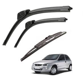 APLICAÇÃO: GM Corsa 1999 2000 2001 ITENS INCLUSOS: 2 Palhetas Dianteiras Bosch Aerofit 1 Palheta Traseira Bosch Eco Características: Para aplicações com encaixe GANCHO Instalação rápida fácil Bosch Em caso de dúvidas na instalação, verifique o verso da embalagem. Não nos responsabilizamos por instalações mal realizadas, procure um especializado. Ficha técnica - Tipo de montagem: Dianteira - Medida da palheta traseira: 16 - Medida da palheta condutor: 18 - Operação silenciosa: Sim - Sistema quick clip: Não - Unidades por pacote: 3 - Medida da palheta acompanhante: 18 Marca: Não Informado