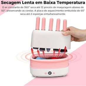 Aquecimento Lento para Preservar a Qualidade: A MakeUpPro seca seus pincéis de maquiagem a baixas temperaturas 45-50C , preservando a integridade das fibras sintéticas ou naturais. Ideal para uso diário sem comprometer a qualidade das ferramentas.