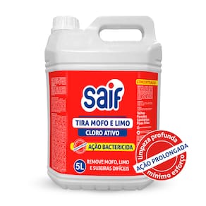 Limpador Tira Mofo E Limo Cloro Concentrado Saif 5L, Removedor De Limo E Mofo Com Cloro Ativo, Vermelho, Remove Mofo, Limo E As Sujeiras Mais Difíceis, Facilitando Sua Vida, Maximizando Toda Limpeza, Linha Institucional 5 Litros