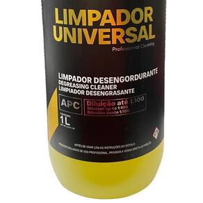 Limpador Universal APC 1L 1:100 Gávea Química O Limpador Universal GÁVEA é um APC All Purpose Cleaner de alta performance. Possui fórmula equilibrada composta por tensoativos, alcalinizantes e solventes. Indicado para a limpeza de diversos tipos de sujeira, tanto orgânica quanto inorgânica. Produto versátil, desenvolvido para aplicações em diferentes superfícies laváveis. Ideal para e manutenção veicular. INDICADO PARA: Estofados, Carpetes, Couro, Plásticos, Borrachas, Cromados, Pintura automotiva, Metais, Caixa de rodas, Motor, Peças sujas e engraxadas Outras superfícies laváveis. CARACTERÍSTICAS: Alto poder de limpeza. Atua sobre sujidades orgânicas óleos e gorduras e inorgânicas poeira, barro, incrustações . Produto multiuso, com ampla aplicação automotiva e industrial. Diluição de até 1:100, proporcionando excelente rendimento. DILUIÇÕES RECOMENDADAS: Limpeza pesada: até 1:5 Sujidade moderada: até 1:30 Limpeza leve e manutenção: até 1:100 MODO DE USO: Dilua o produto de acordo com o nível de sujidade. Aplique por pulverização ou molhe diretamente a superfície com a solução. Deixe agir de 30 segundos a 2 minutos, conforme a necessidade. Esfregue a superfície com escova, pincel ou aplicador adequado. Remova os resíduos com pano limpo ou enxágue com água. Para estofados, dê preferência à remoção com extratora para melhor resultado. A NR Estética oferece uma de 7 dias em seus produtos Marca: Não Informado Ean: 7898948350904