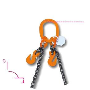 Linga de elevação com duas correntes, ideal para elevação e movimentação de cargas pesadas. As correntes de grau 8 garantem alta resistência e segurança no manuseio de materiais.