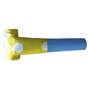 A Língua de Sogra é um brinquedo muito famoso que sempre está presente nas festinhas infantis alegrando a criançada, também sendo possível distribuir como lembrancinha para as crianças após a festinha, elas vão adorar!. O Brinquedo consiste em um tubinho de plástico numa extremidade anexado em um tubo de papel enrolado que quando você assopra ele se estica com o ar e faz um barulho divertido que diverte todo mundo! Possui em sua embalagem aproximadamente 50 Línguas de Sogra de 7cm de comprimento e 2cm de largura com diversas cores e estampas entre estrelas círculos, corações e muito mais. O produto é fabricado com papel monolúcido, bico de plástico, arame e fita adesiva.