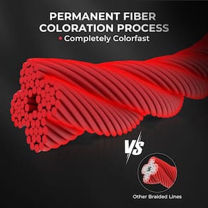 · A linha de pesca trançada KastKing SuperPower ColorShield é fabricada usando uma solução patenteada tingida UHMWPE fibe r. A coloração é injetada na resina de fibra antes do processo de fiação para uma linha completamente resistente à cor. Este processo não permite perda de cor durante carretel, pesca ou uso prolongado. A coloração permanecerá na linha e não irá sangrar ou transferir.