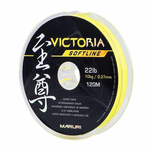 A linha Soft é monofilamento da marca Victoria com fabricação da Maruri e possui baixa memória além de uma grande resistência a abrasão e aos nós.