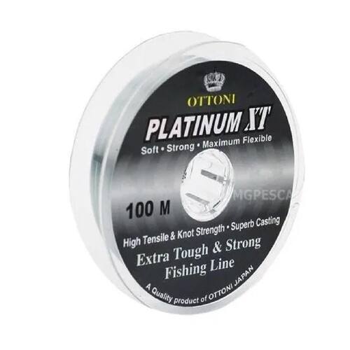 Quando se fala em linhas de monofilamento super resistentes, não tem como não lembrar da famosa Platinum XT, uma das linhas mais utilizadas pelos pescadores brasileiros.Com resistência impressionante, a Platinum XT reúne muitas qualidades, tudo aliado a um custo espetacular. Confeccionada em poliamida, a Platinum XT é extra macia, ultra resistente, força especial para os nós além de sua cor se tornar invisível na água.Dentre outras qualidades e benefícios da linha Platinum XT, destaca-se o baixo coeficiente de memória, a possibilidade de arremessos longos e a grande resistência. Além disso, ela é fabricada na cor cinza que a torna invisível na água.Qualidade Ottoni, desenvolvida com tecnologia japonesa.Com excepcional maciez e força a linha Platinum XT possui uma incrível resistência à abrasão e nos nós.Por ser uma linha muito flexível seu manuseio é mais fácil e rápido.Comprimento: 100 metros.Bitola: 0,35mm.Resistencia: 15.6 Kg.Carretel continuo. Marca: Não Informado