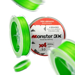 - Marca: Monster 3X - Modelo: Multifilamento X4 M3X - Cor: Verde - Fios: 4 Fios - Carretel: 200 metros - Resistência à abrasão e tração - Elasticidade: Baixa