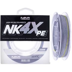 A linha NK 4X é resultado da aplicação da mais alta tecnologia, trançada com maquinário e matéria prima de última geração, resultando uma trança bem mais unida e compacta; super lisa, evitando atrito e corrosão aos passadores, proporcionando arremessos mais longos e precisos, sensibilidade elevada ao máximo, sinta os ataques dos peixes por mais sutil que ele seja, elasticidade zero, possibilitando fisgadas mais rápidas e, portanto mais precisas; zero memória para melhorar o arremesso e evitar cabeleira. Linha Multifilamento NK 4X é trançada em 4 fios de 100% PE sua fabricação é em polietileno especial.