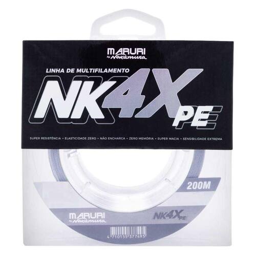 A linha NK 4X é resultado da aplicação da mais alta tecnologia, trançada com maquinário e matéria prima de última geração, resultando uma trança bem mais unida e compacta; super lisa, evitando atrito e corrosão aos passadores, proporcionando arremessos mais longos e precisos, sensibilidade elevada ao máximo, sinta os ataques dos peixes por mais sutil que ele seja, elasticidade zero, possibilitando fisgadas mais rápidas e, portanto mais precisas; zero memória para melhorar o arremesso e evitar cabeleira. Linha Multifilamento NK 4X é trançada em 4 fios de 100% PE sua fabricação é em polietileno especial.