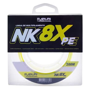 A linha NK 8X é resultado da aplicação da mais alta tecnologia, trançada com maquinário e matéria prima de última geração, resultando uma trança bem mais unida e compacta; super lisa, evitando atrito e corrosão aos passadores, proporcionando arremessos mais longos e precisos, sensibilidade elevada ao máximo, sinta os ataques dos peixes por mais sutil que ele seja, elasticidade zero, possibilitando fisgadas mais rápidas e, portanto mais precisas; zero memória para melhorar o arremesso e evitar cabeleira. Linha Multifilamento NK 8X é trançada em 8 fios de 100% PE sua fabricação é em polietileno especial.