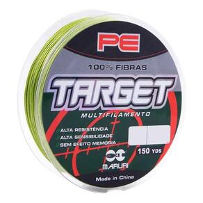 Linha Multifilamento Maruri Target 4x 0,17mm 137m Verde 18lbs 4 Fios Linha Multifilamento Maruri Target 4x 0,17mm 137m Verde 18lbs 4 Fios A linha Maruri Target 4x é ideal para quem busca alta performance e durabilidade na pescaria. Composta por 4 fios micro trançados de polietileno PE , entrega resistência superior à abrasão, maciez e excelente deslizamento pelos passadores, permitindo arremessos mais longos e precisos. Além disso, é impermeabilizada, com baixa absorção de água, sendo indicada inclusive para uso em água salgada. Um produto confiável, forte e com acabamento uniforme, que reduz nós e cabeleiras perfeita para pescadores exigentes. Características Técnicas: Tipo: Multifilamento Modelo: Target 4x Marca: Maruri Número de fios trançados: 4 Material: 100% PE Cor: Verde Diâmetro: 0,17 mm Resistência: 18 lbs / 8,16 kg Carretel com: 137 metros Alta resistência à abrasão Deslizamento suave e melhor assentamento no carretel Indicado para: água doce e salgada Pratique o pesque e solte A linha Maruri Target 4x é ideal para quem busca alta performance e durabilidade na pescaria. Composta por 4 fios micro trançados de polietileno PE , entrega resistência superior à abrasão, maciez e excelente Deslizamento pelos passadores, permitindo arremessos mais longos e precisos. Além disso, é impermeabilizada, com baixa absorção de água, sendo indicada inclusive para uso em água salgada. Um produto confiável, forte E com acabamento uniforme, que reduz nós e cabeleiras - perfeita para pescadores exigentes. Características Técnicas: Tipo: Multifilamento Modelo: Target 4x Marca: Maruri Número de fios trançados: 4 Material: 100% PE Cor: Verde Diâmetro: 0,17 mm Resistência: 18 lbs / 8,16 kg Carretel com: 137 metros Alta resistência à abrasão Deslizamento suave e melhor assentamento no carretel Indicado para: água doce e salgada Pratique o pesque e solte Marca: Não Informado