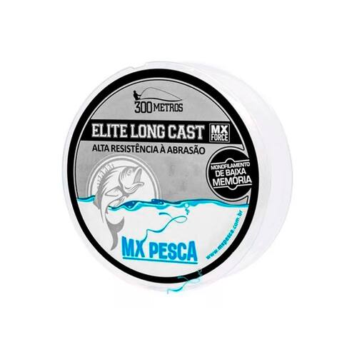Especificações: - Marca: MX Pesca - Modelo: Elite Long Cast - Tipo: Linha Monofilamento - Comprimento: 300 m - Cor: Transparente - Material: Poliamida - Indicação: Água Doce e Salgada - Bitola: 0,90 mm - Resistência: 67,80 kg