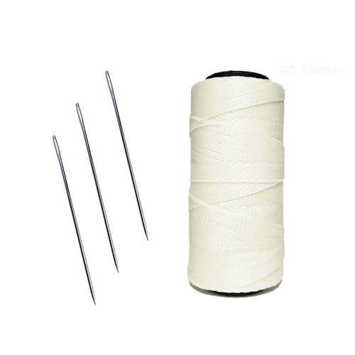 Linha para artesanato, couros, sapato n04 + 3 agulhas de aço Cor: branco GENERAL COUROS. 3 agulhas manual com ponta feito em aço niquelado para melhorar a qualidade. Marca: bondnyl Peso:80g Modelo encerado Fio grossura n4 aproximadamente 1,2mm de espessura Metragem: aproximadamente 160mts