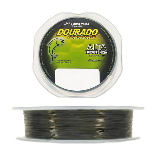 A Dourado Top Force e´ extremamente forte e confia´vel, sua resiste^ncia supera todas as linhas similares. Produzida na cor verde oliva, se adapta bem as condic¸o~es de rios, lagos, lagoas e ate´ mesmo nos litorais.