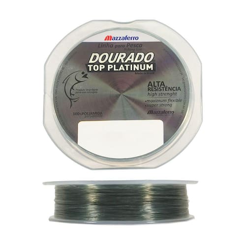 A linha de monofilamento Dourado Top Platinum e´ produzida com copoli´mero de nylon.