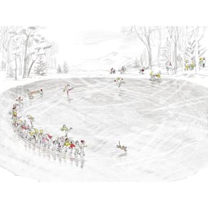 Um delicado e alegre livro-imagem da ganhadora do prêmio Hans Christian Andersen de 2022 que demonstra o poder e a liberdade da arte. A história deste livro começa com uma linha. Algumas vezes, ela é traçada pelo lápis de uma artista. Outras, pelos rastros dos patins de gelo de uma garota. Entre saltos, piruetas, rodopios, riscos e rabiscos, sua magia vai tomando conta do papel — e chega até nós sem precisar de uma palavra sequer. Neste livro-imagem (até então inédito no Brasil) de Suzy Lee, uma das mais premiadas e conhecidas autoras do livro ilustrado da contemporaneidade, a sul-coreana presenteia seus leitores com uma emocionante, lúdica e divertida homenagem à criação e à imaginação. Indicado para leitores a partir de 4 anos.