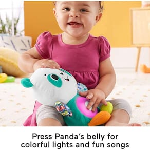 . Take-along panda brinquedo com pelúcia e malha tecidos, barriga iluminada, e música e frasesCar a barriga do panda para música, luzes e frases sobre números, formas, maneiras e maisEsso amigo carinhoso é lavável com a eletrônica removidaCollect amigos adicionais linkimals para vê-los interagir! (Cada um vendido separadamente e sujeito à disponibilidade.) Para bebês e crianças com 9 meses ou mais