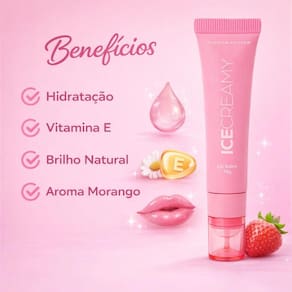 Descubra o Lip Balm Mari Maria Makeup Ice Creamy Strawberry 10g, a solução perfeita para lábios ressecados e sem vida. Este balm labial inovador da MARI MARIA MAKEUP oferece uma experiência sensorial única com seu delicioso aroma de morango, inspirado no sorvete napolitano. Sua fórmula nutritiva e super cremosa, enriquecida com Vitamina E e ativos hidratantes, garante hidratação intensa, proteção prolongada e um brilho natural irresistível, deixando seus lábios macios e saudáveis em todos os momentos.