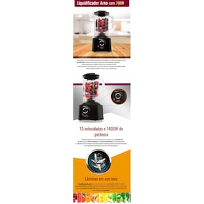 Robusto e imponente, o Liquidificador Arno garante versatilidade para suas receitas. O motor de 700W, reunido com a Função Pulsar, 5 Velocidades e lâminas de aço inox, garante potência ideal para misturar, triturar e liquidificar até os ingredientes mais resistentes. Fácil de usar, as lâminas possuem a exclusiva tecnologia Powelix Pro, sendo 3 vezes mais eficiente, graças à sua ultra resistência, alto poder de corte. O design diferenciado, com lâminas de corte na angulação correta processam diversos tipos de ingredientes, sem que seja necessário pré-cortar em pequenos pedaços, por exemplo. Sucos, sopas, molhos, vitaminas, massas leves de bolos e muito mais, o Liquidificador Arno Limpa Fácil traz praticidade na hora do preparo de suas receitas, com copo com capacidade total para até 3,1 litros. Eficiente durante o uso e super fácil de limpar. Suas lâminas são removíveis, acompanham vedação para evitar vazamentos e permitem misturas perfeitas de forma rápida no dia a dia da sua cozinha.
