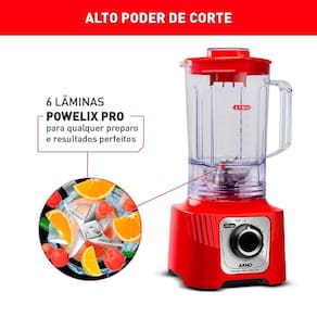 O Liquidificador Arno Power Max 1400W LN63 Vermelho 127V conta com incrível potência (1400W) combinada com as 6 lâminas Powelix Pro, o que tornará o seu preparo super rápido e perfeito! Além disso, o produto conta com 3,1L de capacidade total, 15 velocidades e design e qualidade Arno Processa até ingredientes mais duros: Lâminas em aço inoxidável.