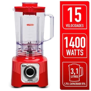 Faça receitas de todos os tipos e tenha uma mistura uniforme e sem esforços com o Liquidificador Arno Power Max LN63 15 Velocidades 6 Lâminas 3,1L Vermelho 220v.